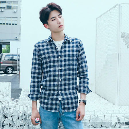 Wholesale Korean Style Plaid Slim Long Shirts