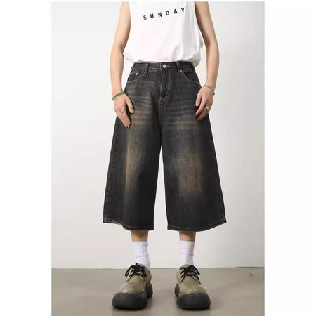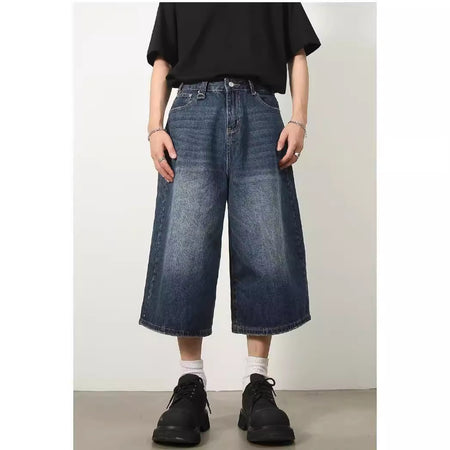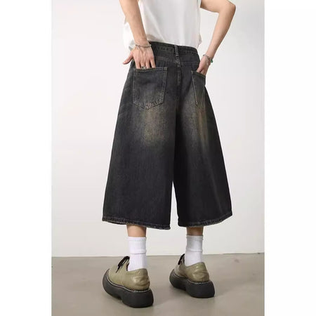 Rock that relaxed summer look with these Wide-Leg 7-Point Denim Shorts for men 🌊👖. Featuring a washed vintage style and loose American profile, these are the perfect fit for chill days, road trips, or casual hangouts in Nepal 🚗🩳.
