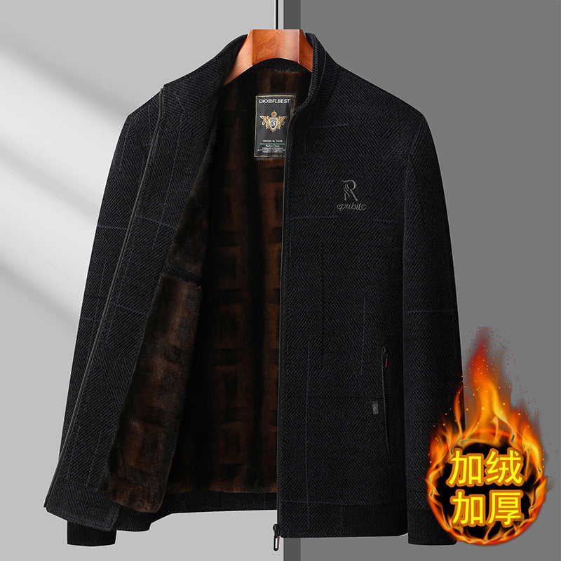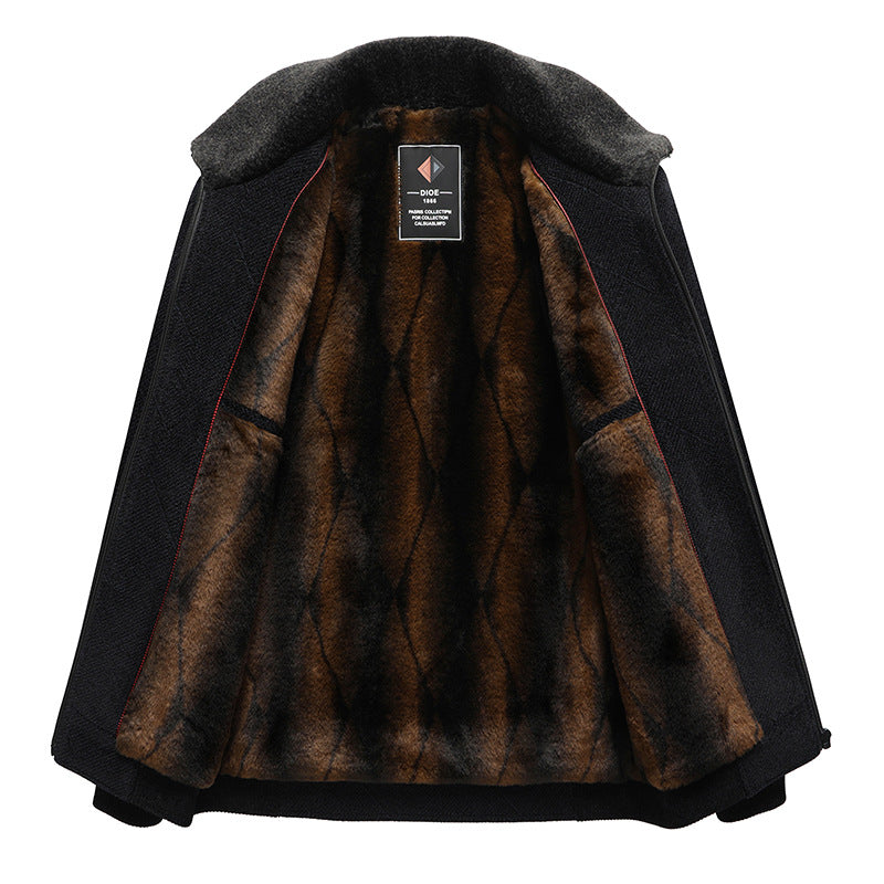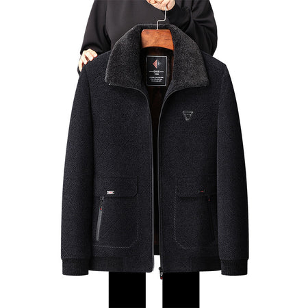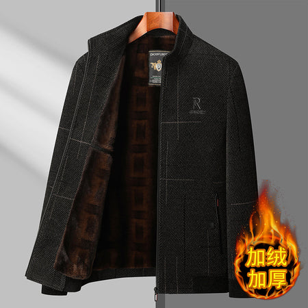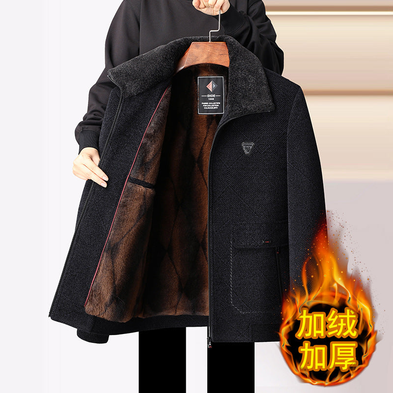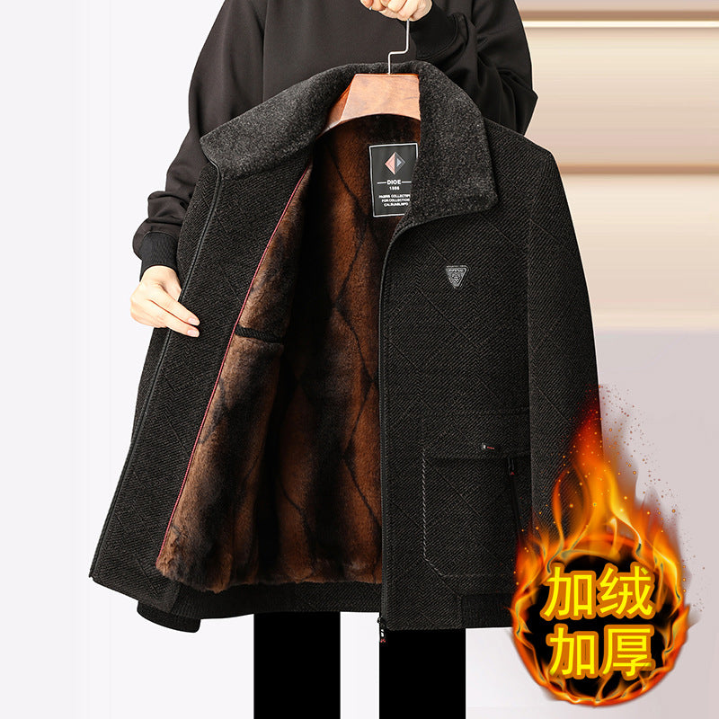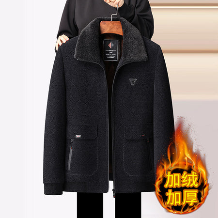 Winter Fleece-Lined Dad Coat Woolen Jacket Men Elderly