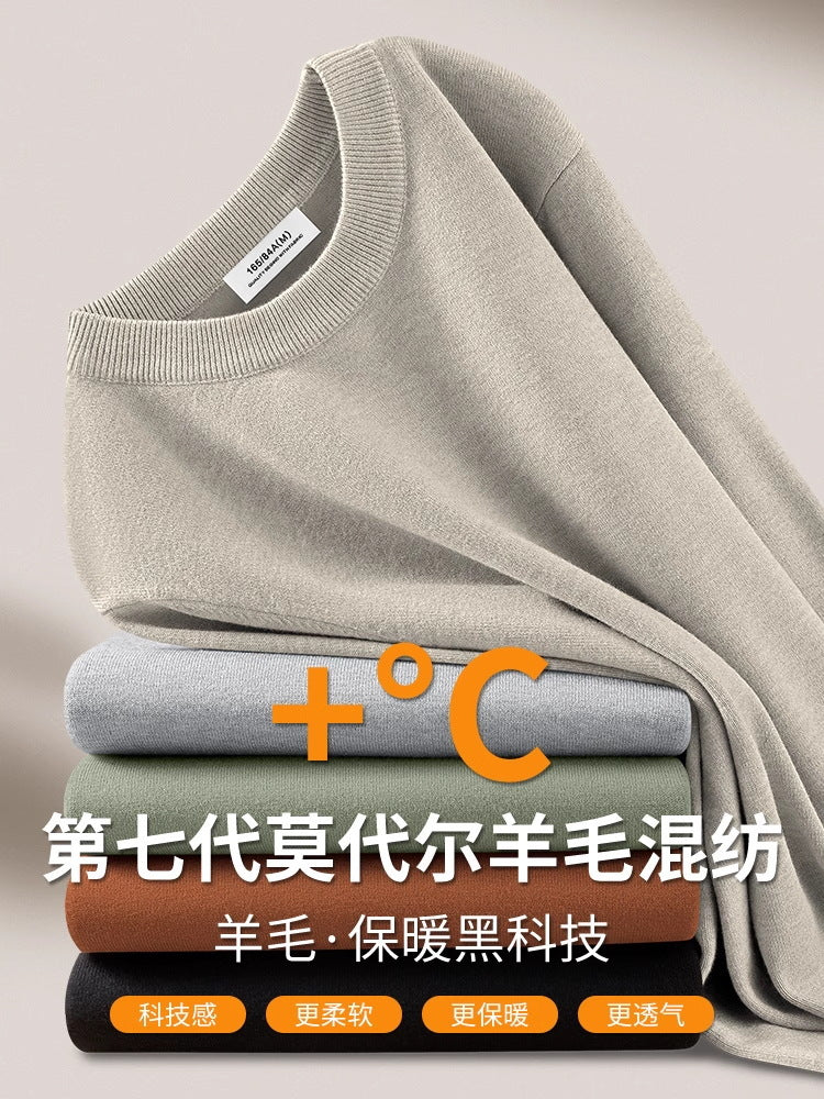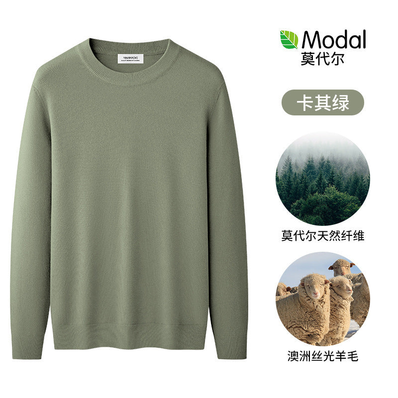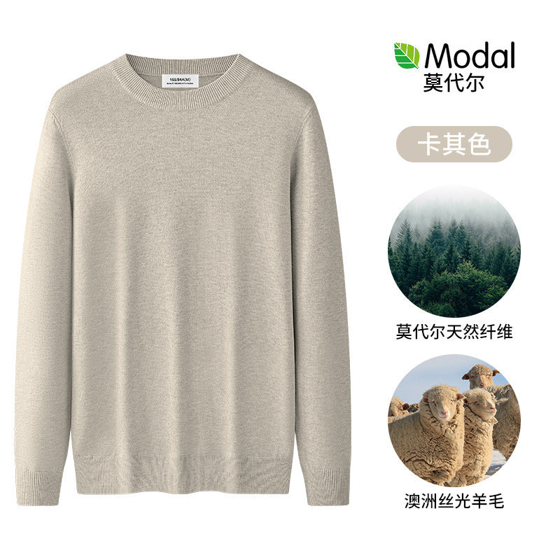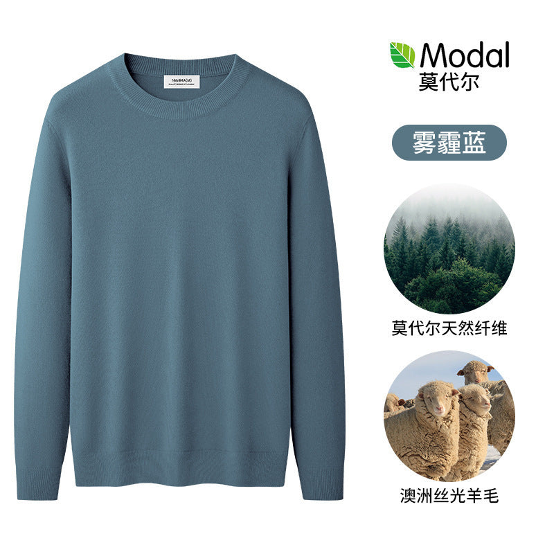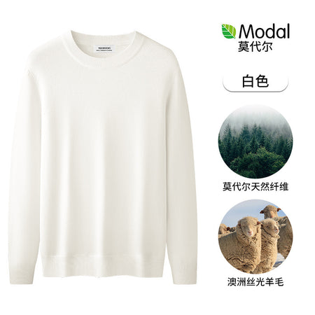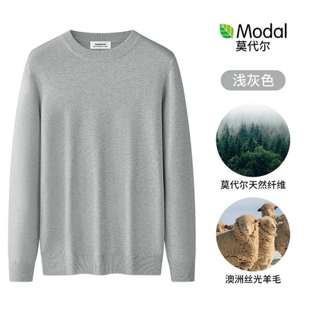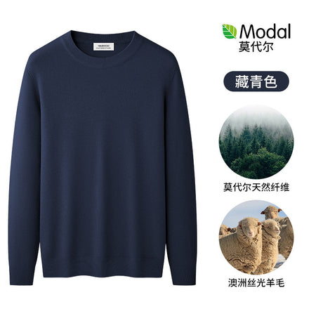 Wool Modal Round Neck Knitted Sweater Men's Long Sleeve