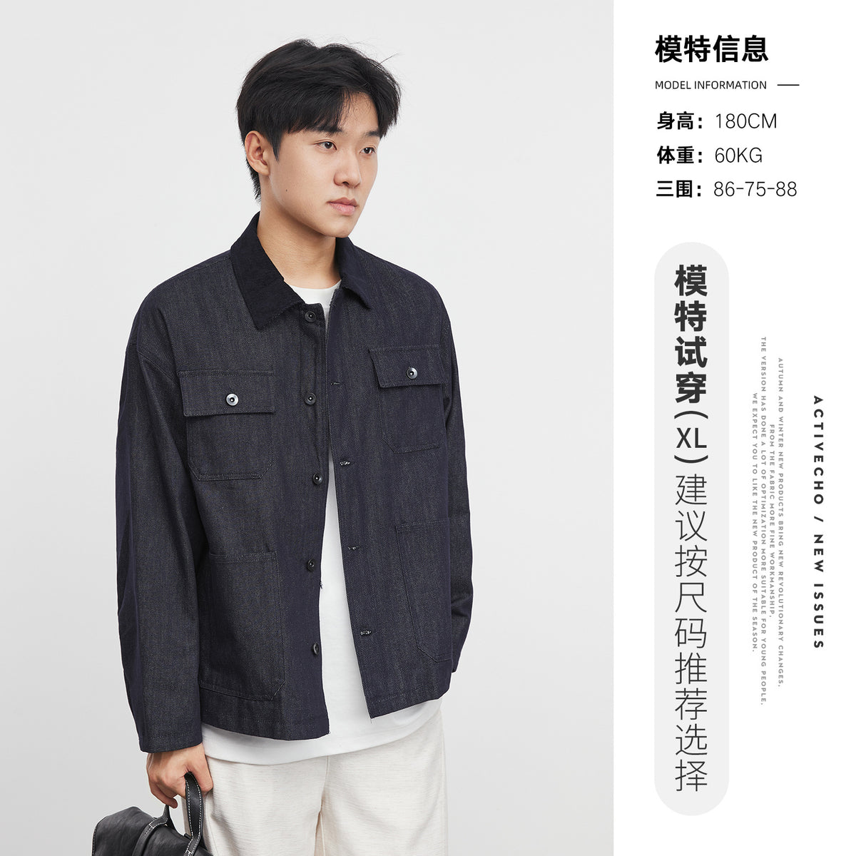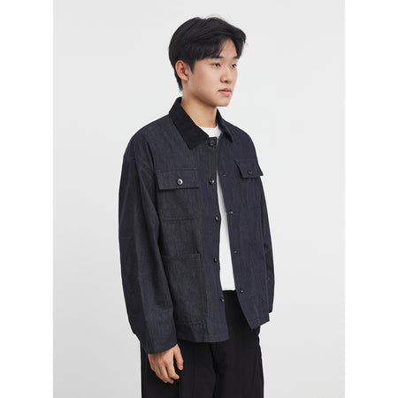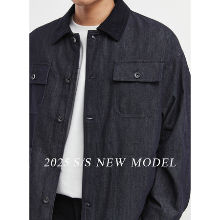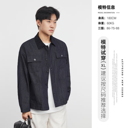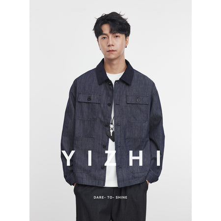 Men’s Denim Blue Jacket – Casual Lapel Spring Workwear